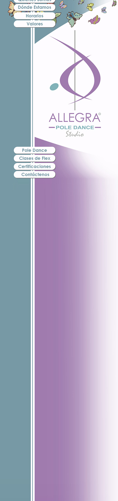 ALLEGRA POLE DANCE es un estudio de baile que nace en Febrero de el año 2013, pensado especialmente para la mujer y creado con un gran objetivo: Enseñar con profesionalismo y amor, en un lugar rodeado de alegría y compañerismo.